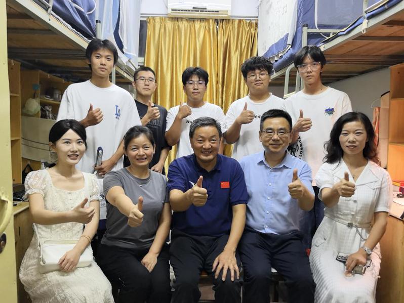 雷儒金一行首先来到28栋新生宿舍,与同学们亲切交流。雷校长细致询问大家的家庭情况和入学感受,并结合自身成长经历,勉励同学们要珍惜大学时光,艰苦奋斗、不断学习,努力提升综合素质。他强调,光学理论不够,更要练就过硬本领,加强体育锻炼,发展个人兴趣,营造融洽的宿舍氛围,做到互帮互助、共同进步。雷校长还特别提醒同学们要尽早做好人生规划,脚踏实地积累知识与经验,为未来职业生涯夯实基础。
