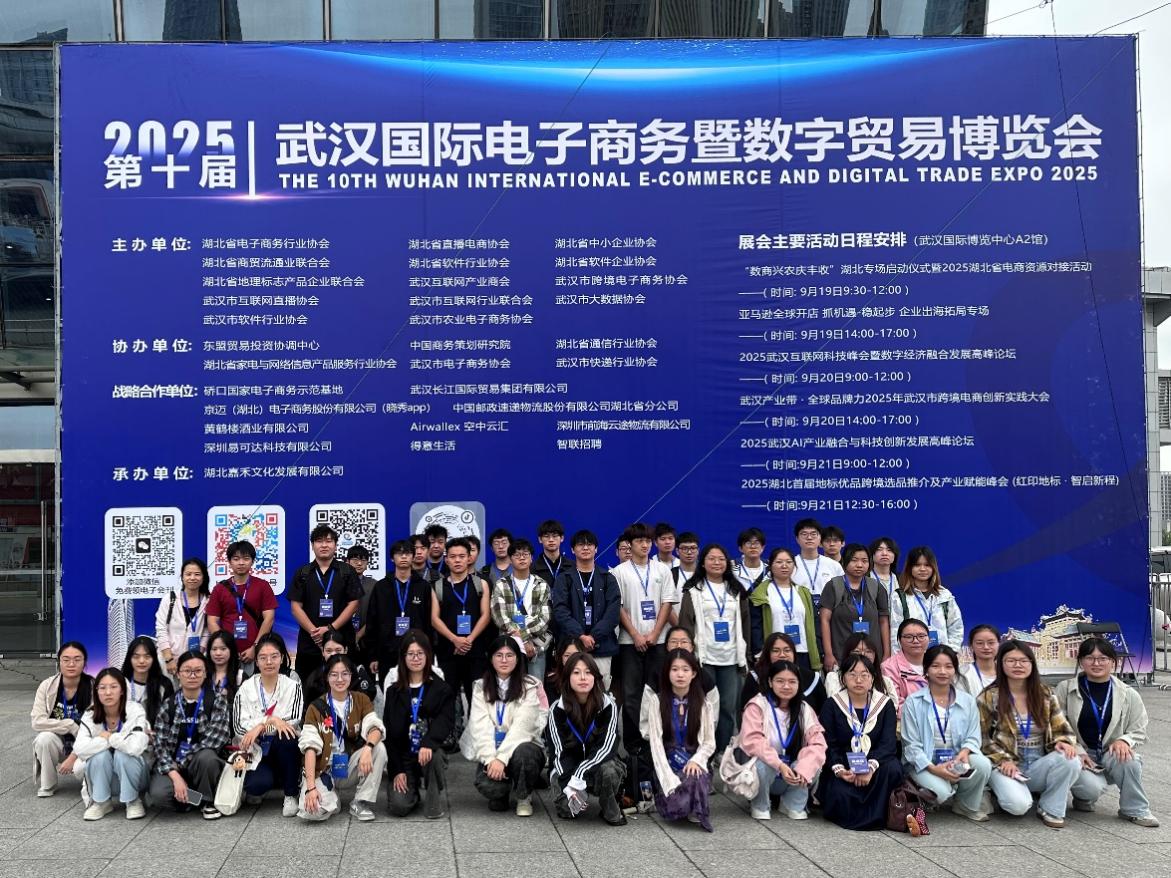 2025年9月21日,我校yl23455永利官网2301班和2302班的65名同学,在曹子瑛和王睿田两位老师的带领下,前往武汉国际博览中心开展专业见习活动,实地探访第十届武汉国际电子商务暨数字贸易博览会(以下简称“武汉电博会”), 沉浸式体验数字贸易的创新生态。