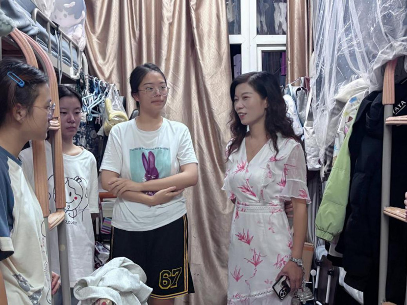 走访中,侯书记与大家亲切交谈,细致关心每位同学假期见闻与感受,并围绕学业规划与个人发展,与同学们展开深入交流。从考研复习到就业选择,她耐心解答同学们的困惑,鼓励大家尽早树立目标、脚踏实地前行。交流中,侯书记多次叮嘱同学之间要互帮互助,劳逸结合,珍惜同窗情谊,共同营造文明和谐、积极向上的居住环境与学习氛围。