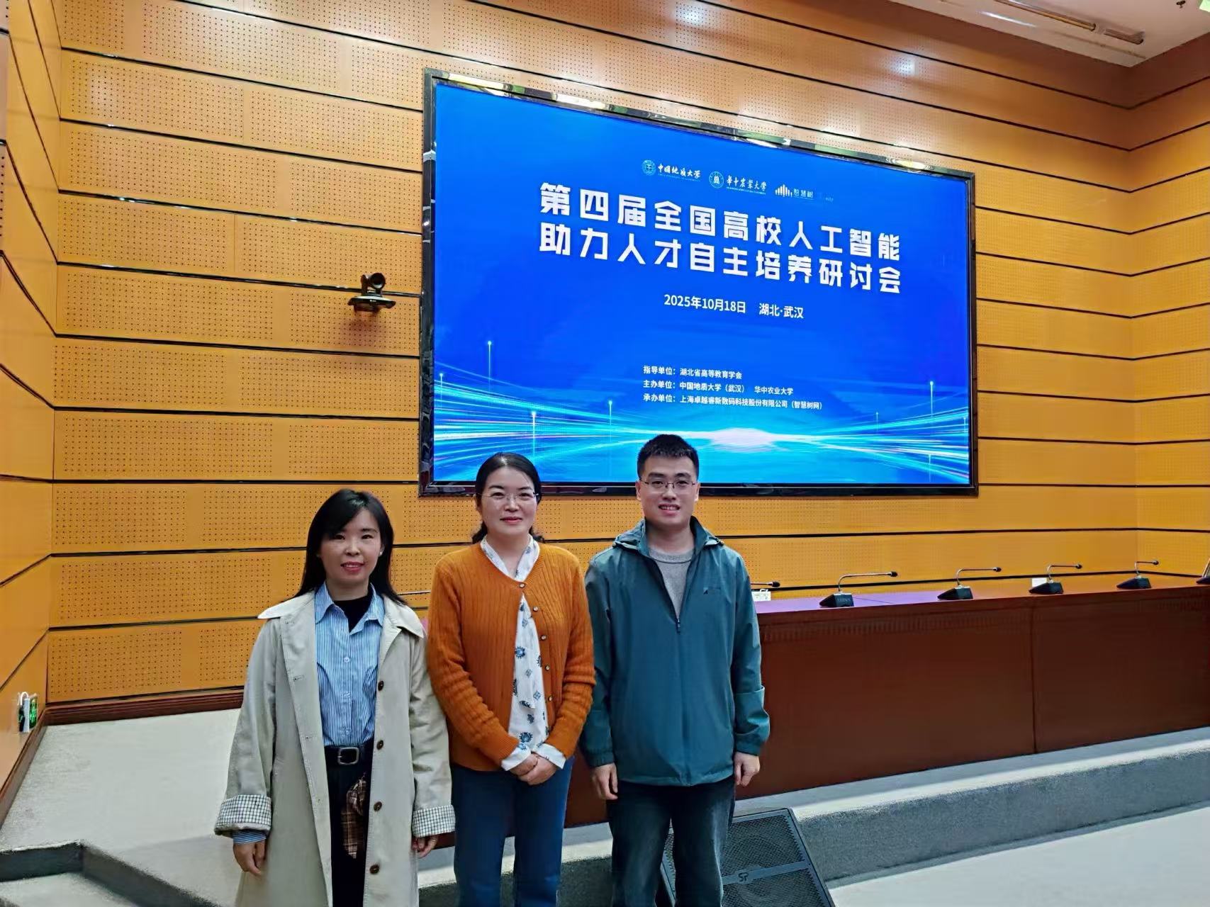 2025年10月18日,第四届全国高校人工智能助力人才自主培养研讨会在中国地质大学(武汉)举办,yl23455永利官网教师代表陈冬梅、常亚军、郝荣参加相关活动。