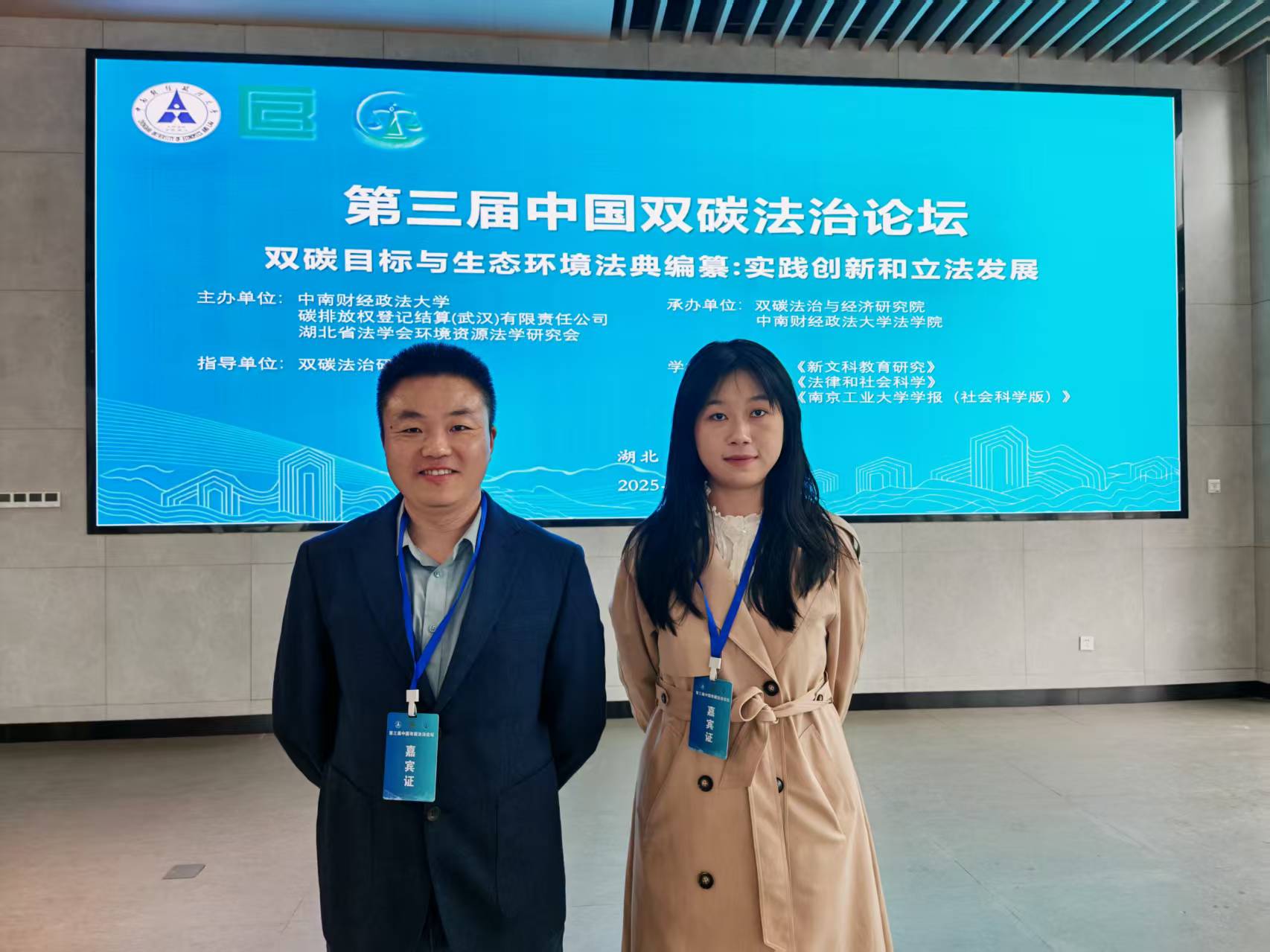 2025年10月19日,由中南财经政法大学、中碳登、湖北省法学会环境资源法学研究会主办、中南财经政法大学双碳法治与经济研究院、中南财经政法大学法学院承办的第三届中国双碳法治论坛在中南财经政法大学举办。本次论坛以“双碳目标与生态环境法典编纂:实践创新和立法发展为主题,yl23455永利官网教师周勇飞教授、25级法律硕士研究生高阳受邀参加了此次论坛。