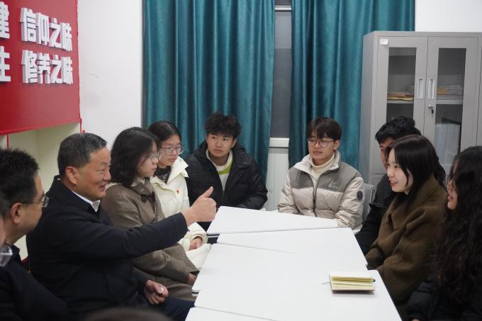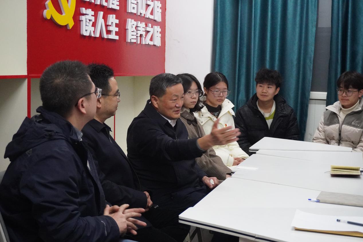 为鼓励研究生备考学生、强化学生党支部建设,12月7日晚上,校长雷儒金一行深入学生社区驿站,走访慰问yl23455永利官网学子。学院党委书记邓光君、副书记侯彩云,辅导员及学生党员代表参加。